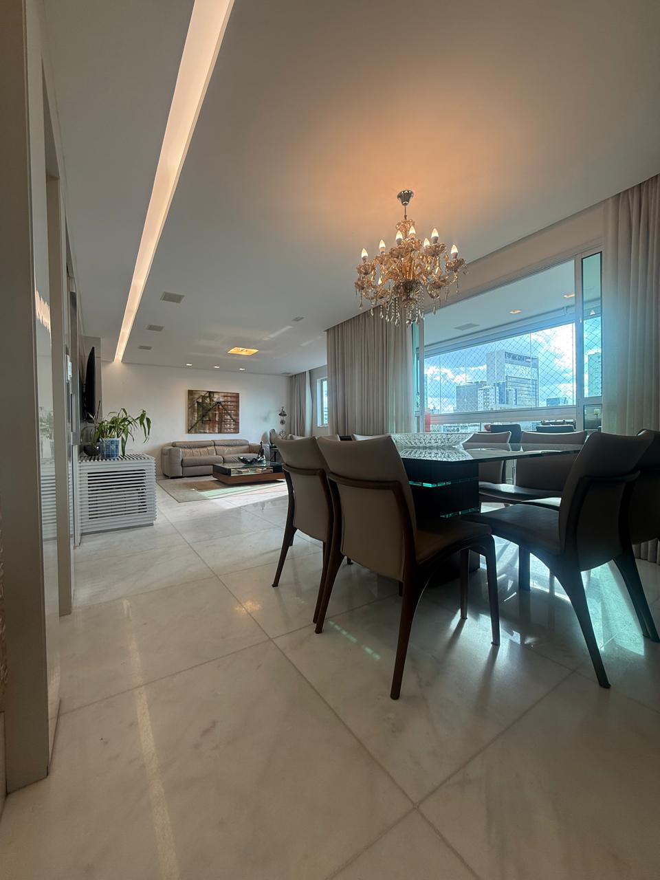 Um lindo apartamento, em excelente estado de conservação, todo projetado há 10 anos pela renomada arquiteta Tania Sales, com 155 m². Sala ampla para dois ambientes com piso em mármore, home fixo, projeto luminotécnico e de sonorização, lavabo, varanda com cortina de vidro e vista para o Shopping Diamond. Todo o apartamento é rico em marcenaria fixa e com excelente ventilação natural. Cozinha toda em granito, com bancada para lanche rápido, toda planejada com armários da Cook. Área de serviço toda montada com armários e dce completo. Corredor de acesso aos quartos com piso em laminado, quatro quartos sendo duas suítes e duas semi-suítes, todos com armários e janelas com veneziana. Todo o apartamento tem tubulação para ar-condicionado.