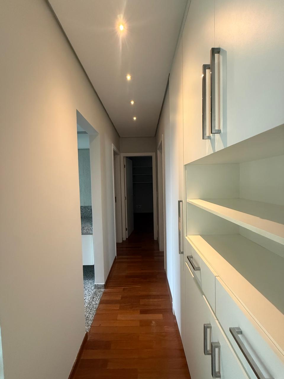 Apartamento com uma excelente planta, são 133,89 m², sala com piso em mármore com polimento italiano, varanda foi incorporada à sala com uma deliciosa vista para a copa das árvores, originalmente são quatro quartos, porém um foi integrado à sala, podendo ser reversível novamente. Projeto luminotécnico, paredes revestidas com lâminas de madeira, lavabo, cozinha ampla com piso todo em granito, toda montada com armários e dce completo. Corredor de acesso aos quartos com ampla rouparia, três quartos espaçosos, todos com armários e janelas com veneziana, sendo suíte master com hidromassagem. Três excelentes vagas de garagem, sendo duas livres e uma presa, e um espaçoso box de despejo. Agende uma visita, será um prazer atendê-lo.