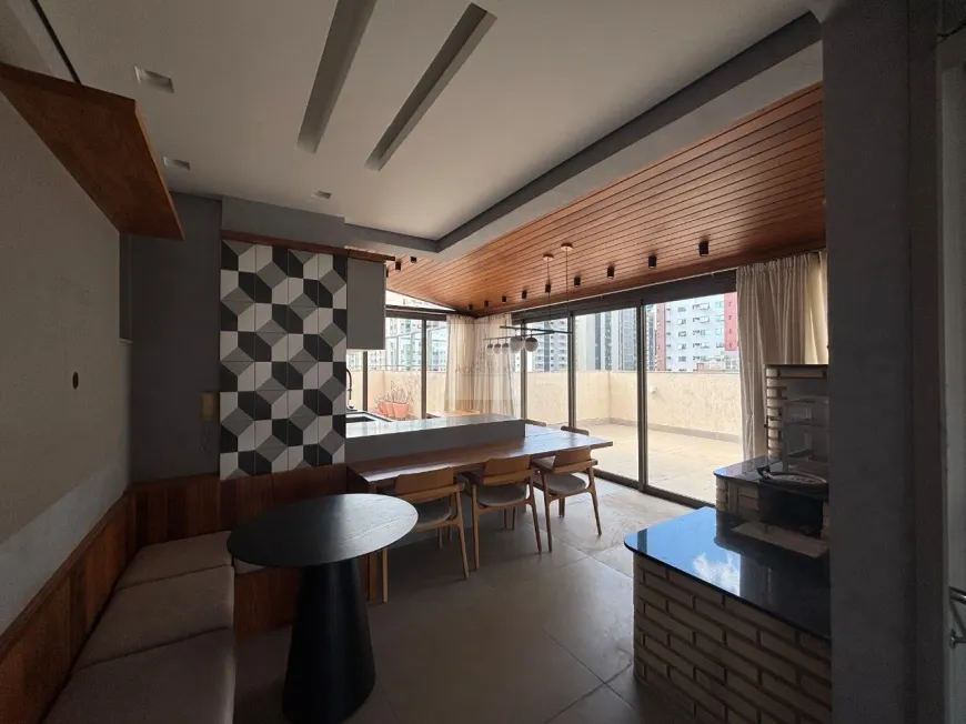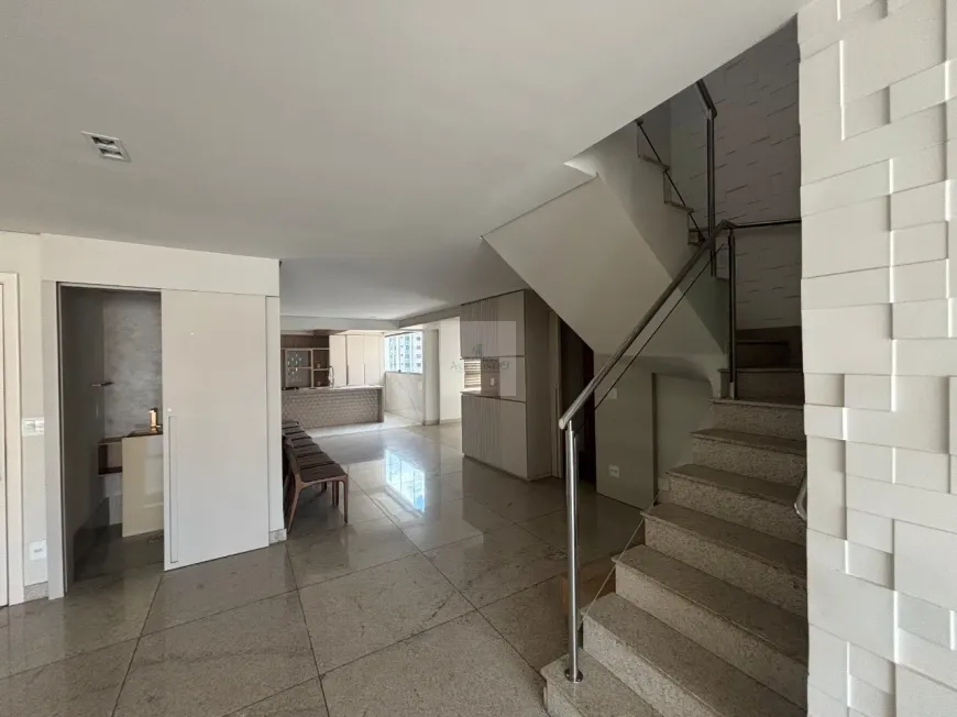 O apartamento conta com armários e ar-condicionado em todos os ambientes, luminárias e cortinas, garantindo conforto e praticidade. Além disso, a garagem possui 5 vagas e um quarto de despejo.